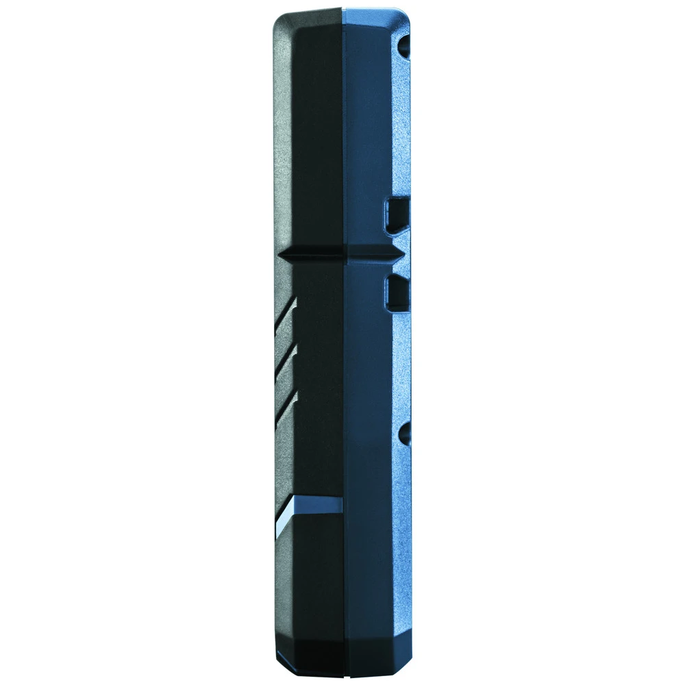 The Bosch LR10 Rotary Laser Receiver is designed to increase red beam rotary laser detection up to 800 ft., with a backlit LCD display for use in darker areas or outdoors. The display illuminated large, easy-to-see indicators, including up/down arrows, center line, accuracy level, battery level and audio signal. It also has dual-sided indicators, to provide easy visual readout on both sides of the receiver. The oversized laser detection area helps find the laser beam faster, making it easier to start setting level. The receiver provides convenience features such as built-in magnets for secure attachment to metal surfaces, an adjustable audio indicator, intuitive three-button keypad and ergonomic soft grip.